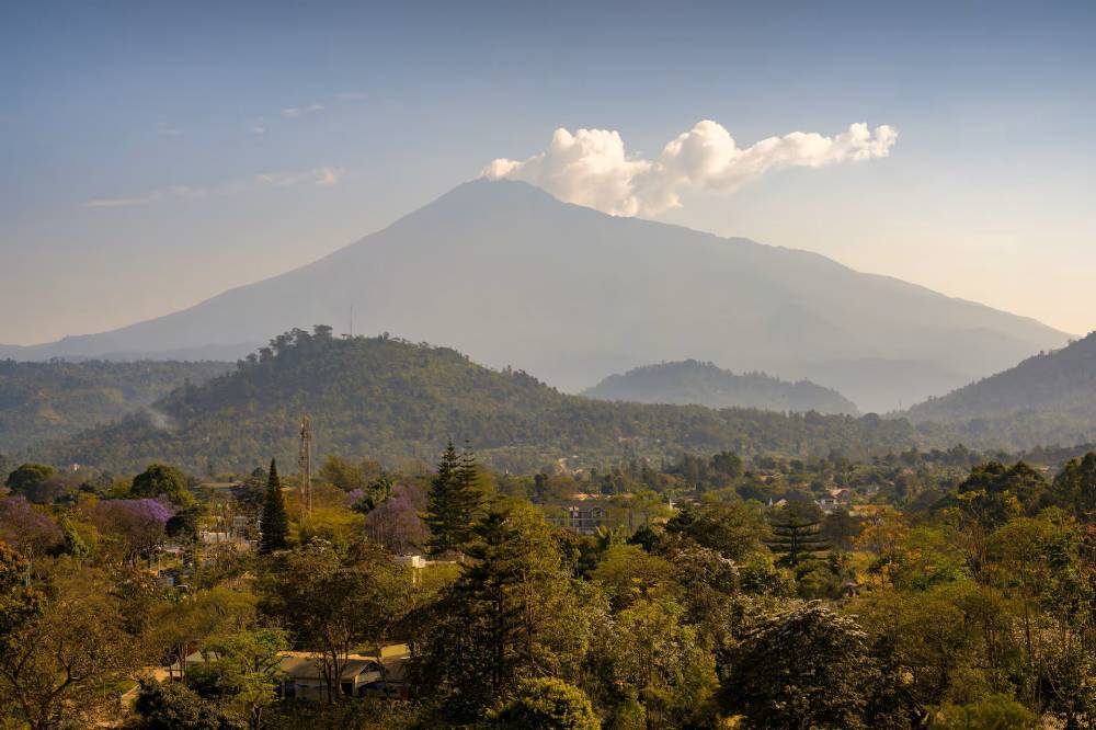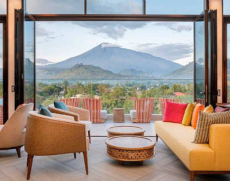 På klare dager byr hotellet på en imponerende utsikt mot Mount Meru, Afrikas fjerde høyeste fjell med sine 4 566 meter.