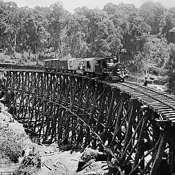 Byggingen av den opprinnelige jernbanen mellom Nairobi og Mombasa startet i 1896 og ble ferdigstilt i 1901. Banen ble bygget av Storbritannia for å beskytte de britiske kolonienes interesser i Afrika. Byggingen var problematisk fra starten, og 2.500 indiske arbeidere mistet livet under oppføringen. Utover forhold som tørke, malaria og dysenteri, var spesielt Tsavo et farlig sted å oppholde seg.